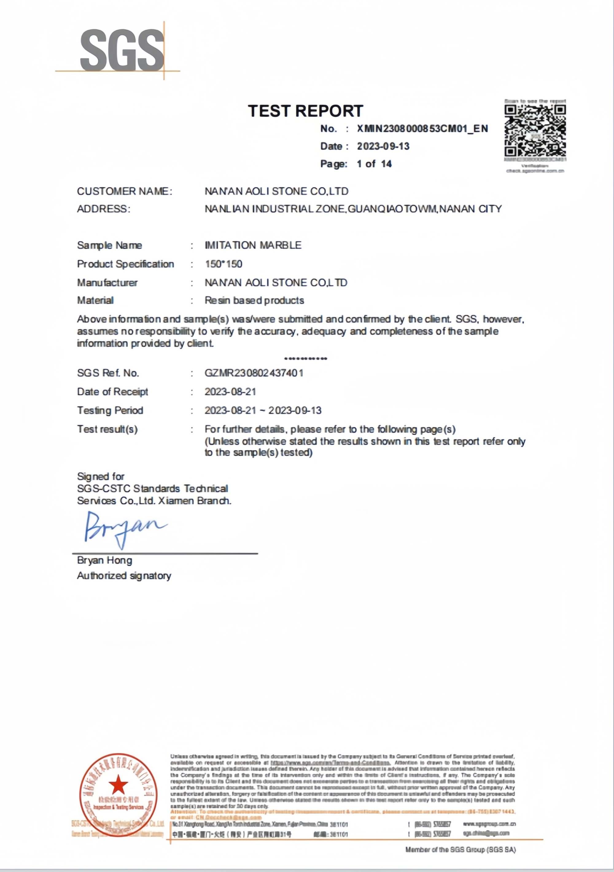 certificado SGS