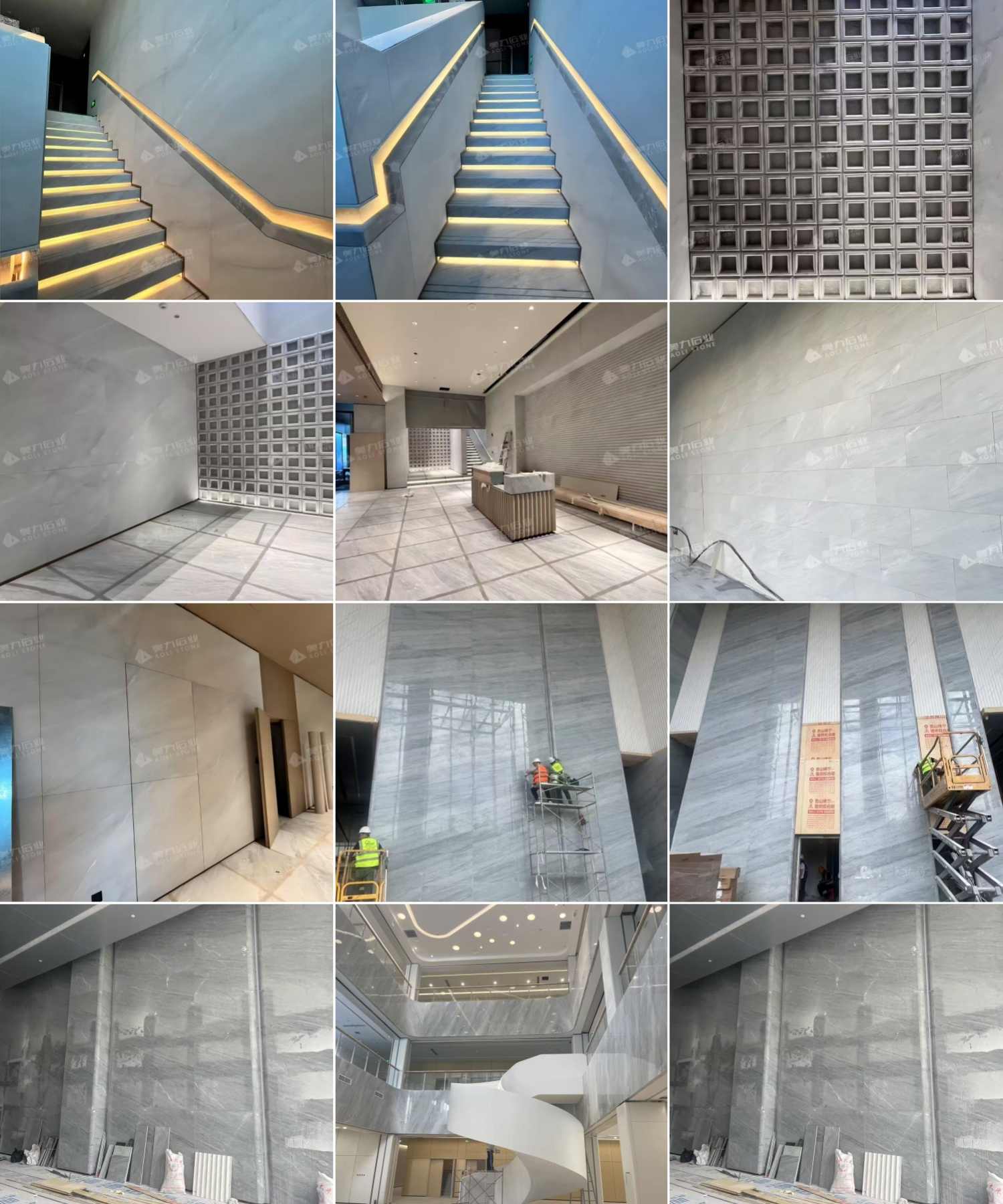 En Aolistone, el mármol gris Stratus se procesa mediante un proceso de trabajo controlado y profesional. Cada bloque se somete a una rigurosa selección visual y estructural antes del corte. Las losas están reforzadas con una malla de fibra de vidrio estándar para mayor estabilidad. El acabado superficial incluye Pulido fino de malla 100, ofreciendo una superficie lisa y reflectante que resalta las vetas naturales, manteniendo una elegancia táctil. Cada losa se calibra, se revisan sus bordes y se inspecciona su calidad antes del embalaje.
